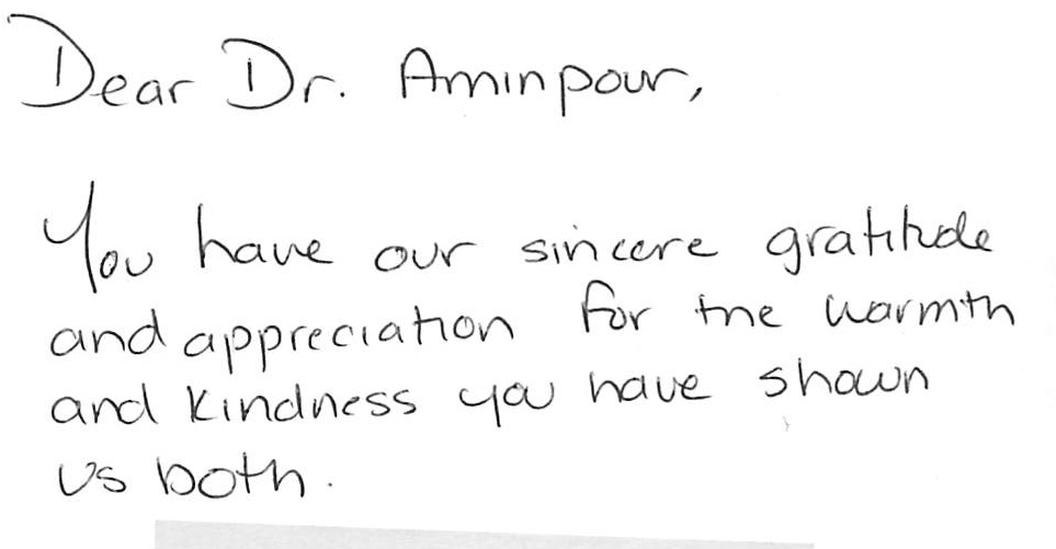 Highly recommend Dr. Aminpour and his great staff. Thank you for the Breath of fresh air.- BE